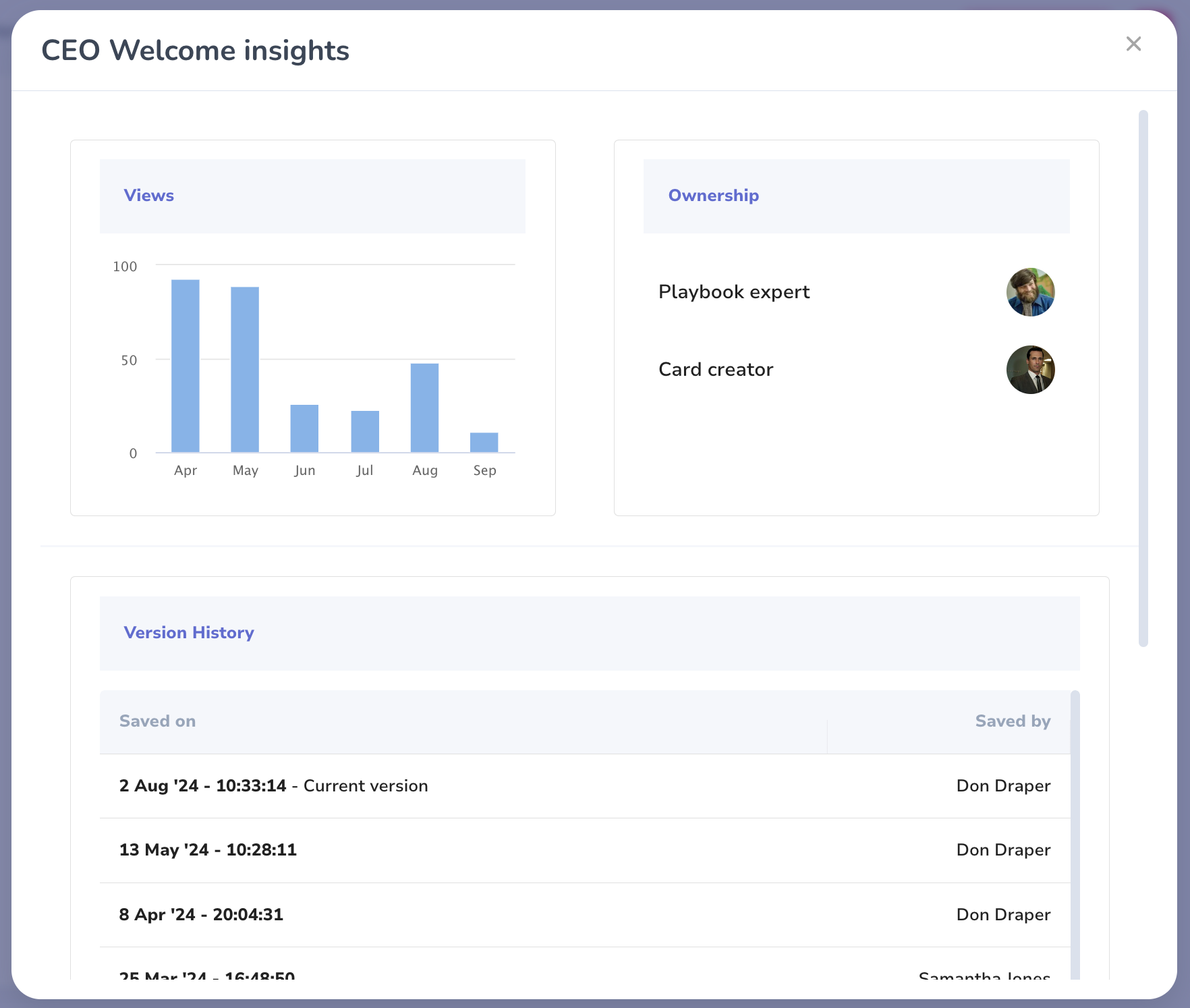 Why?Track the interaction with your cards and remain in control of all (earlier) versions of your cards by using the Insights on card level.